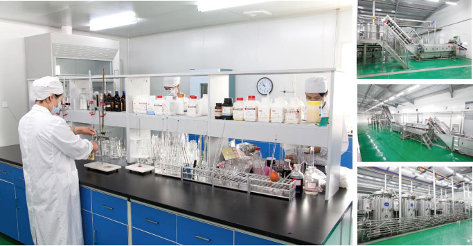 公司建有符合標準的凈化車間以及國內(nèi)先進的干棗蜜餞、多品種濃縮果蔬汁、原漿、NFC原汁、果汁飲料灌裝線、國際先進植物提取、粉劑處理包裝線等生產(chǎn)線數(shù)條,同時配套4000噸級冷庫及及其他配套設(shè)備設(shè)施。